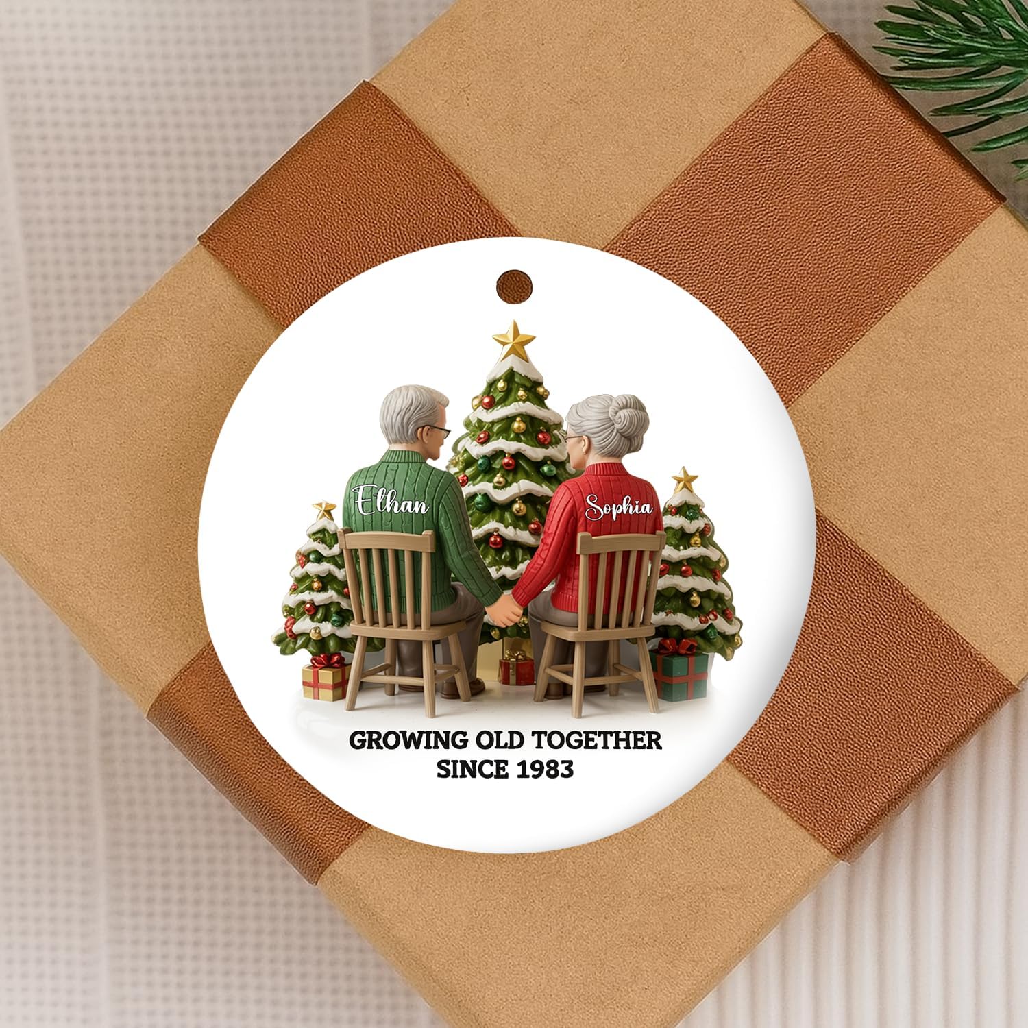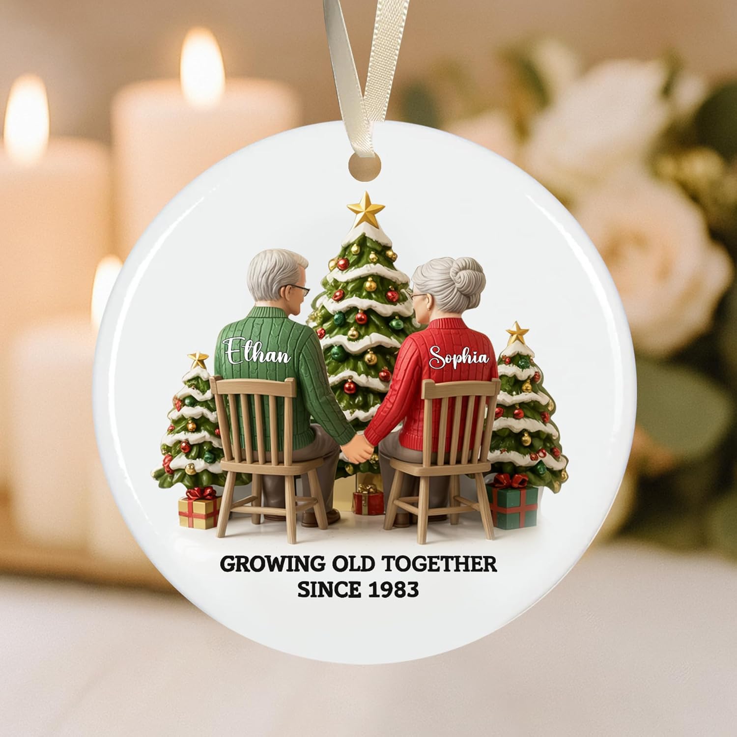 Love Signal Growing Old Together Christmas Ornament, Personalized Couple Ornaments for Christmas Tree Decor, Gifts for Wife Husband Mom Dad Women Men, Boyfriend, 2D Flat Acrylic, Ceramic Ornament 02